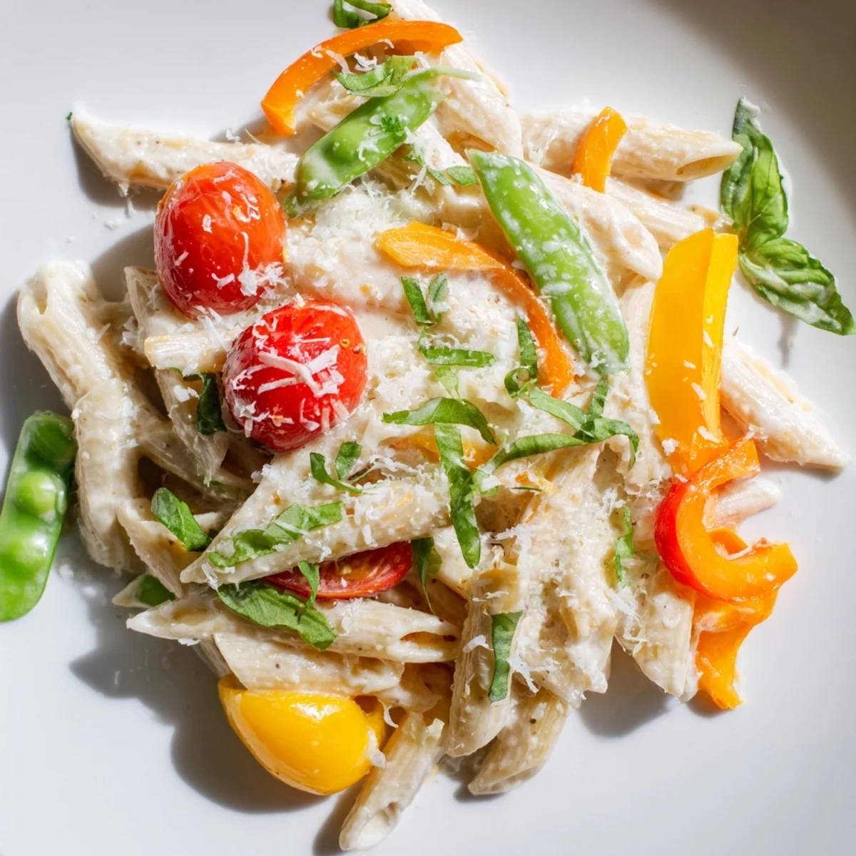 This creamy pasta primavera combines tender penne or fettuccine with a colorful mix of zucchini, bell peppers, carrots, sugar snap peas, and cherry tomatoes. Sautéed garlic and a rich sauce of heavy cream, butter, and Parmesan cheese bring depth and smoothness to the dish. Finished with lemon zest and fresh basil, it offers a fresh and satisfying meal packed with vibrant flavors. Ideal for a quick, easy, and comforting main course that highlights seasonal vegetables.